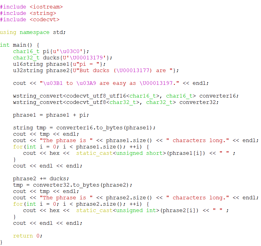 - Unicode is a 8 (UTF-8), 16 (UTF-16) and 32 (UTF-32) bit standard.