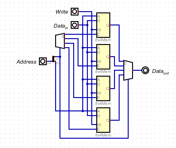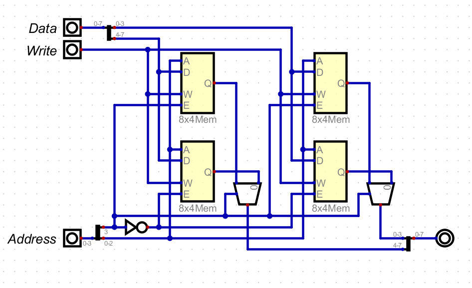 - A 32x4 memory from 4 8x4 memory chips