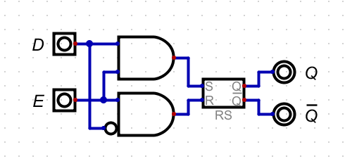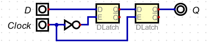 - When the clock changes from low to high, the value of D is stored in the circuit.