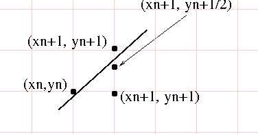 If $F(x_1+1, y_1+1/2)$ is positive, the line is above it, select $(x_1+1, y_1+1)$