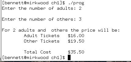 cout << "\tAdult Tickets\t$" << adultCost << endl;