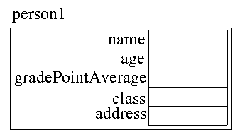 StudentT person person.age = 19; person.class = SOPHOMORE; person.name = "Abe Student"; person.gradePointAverage = 4.0; ... cout << person.name; person.gradePointAverage = points/credits; person.age++;