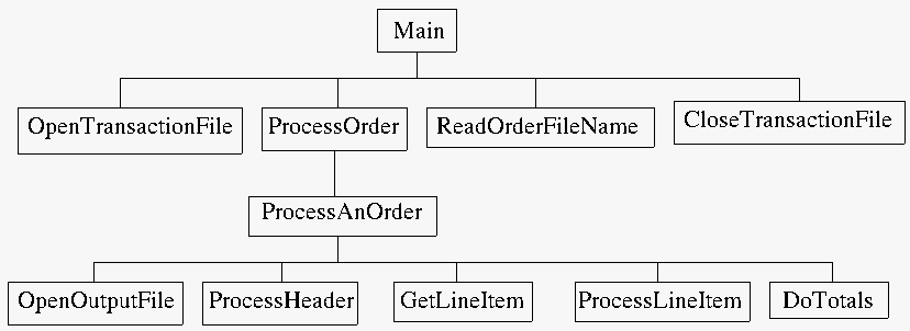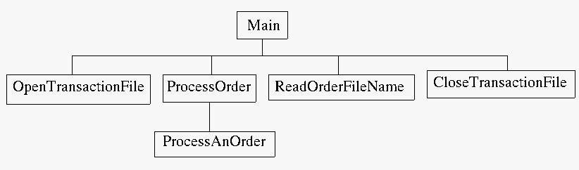 The main program will open and process the transaction file, one order at a time until all orders have been processed.