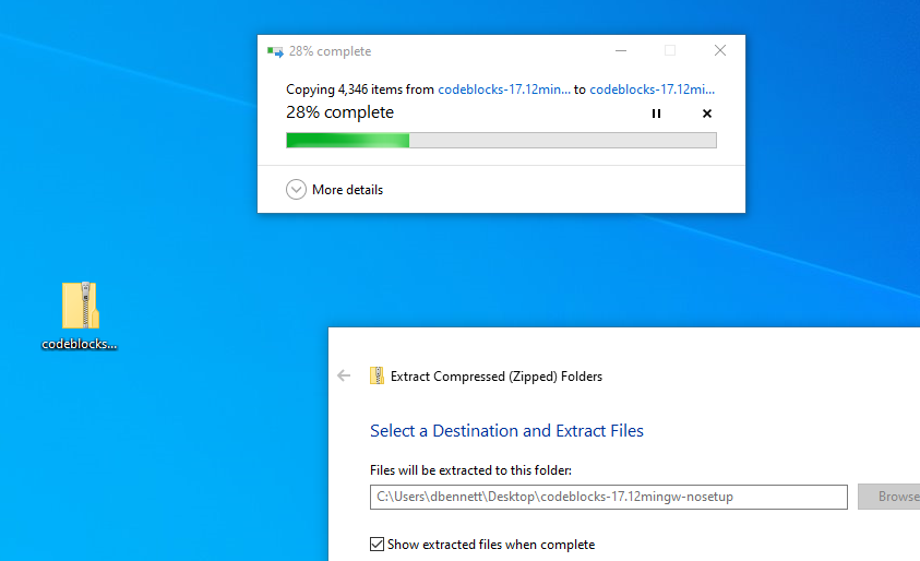 - I grabbed codeblocks-17.12mingw-nosetup.zip