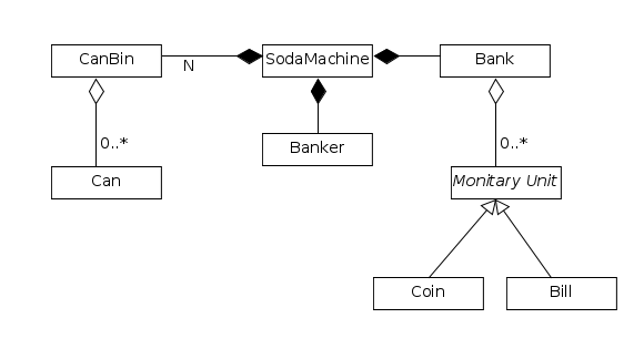 - A soda machine has a bank, which can not exist outside of a soda machine.