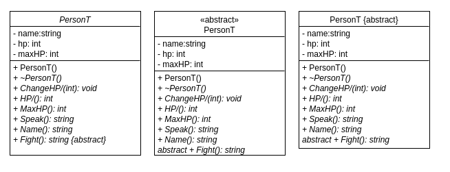 - Italics seems to be the winner with not notation for pure virtual methods.
