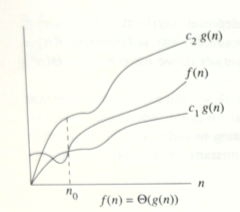 - $\Theta (g(n)) = \{f(n) : \exists ~ c_1 > 0, c_2 > 0 , n_0 > 0 \ni 0 \le c_1g(n) \le f(n) \le c_2g(n) ~ \forall ~ n \ge n_0\}$