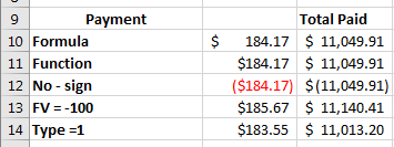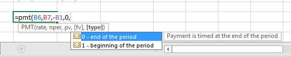 =pmt(b6, b7, -b1, 0, 1)