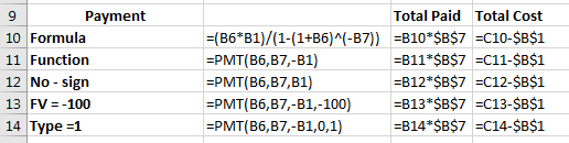 =pmt(b6, b7, -b1, -100)