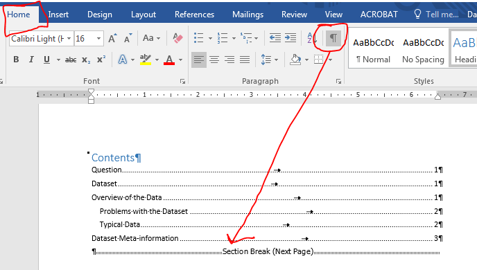 Place a next page break before Dataset Meta-Information