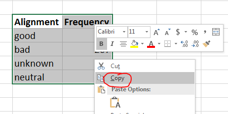 So select the table in excel
