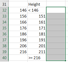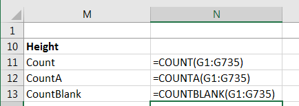 - In M10, put Height, M11, Count, M12, CountA, M13 CountBlank