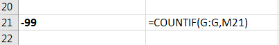 - enter =frequency(G:G,M32:M39) and press ctrl-shift-enter