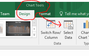 - On the Chart Tools Design tab in the Data workgroup, select Select Data