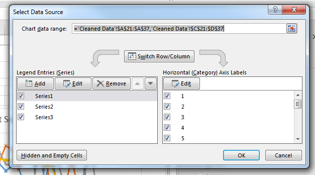 - Set the name of the series to be "Homework", by clicking in cell A1