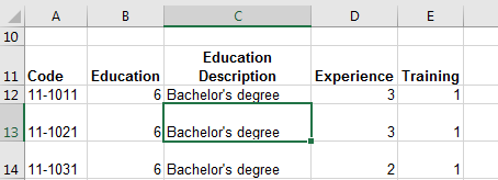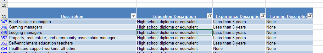 - Filter on education, only the level you have obtained (Some College, High School Diploma, No Formal Education.)