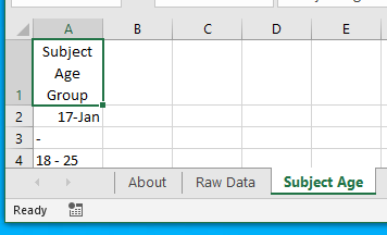 - Create a list of the unique Subject Age Group values starting in cell A1 of this page.