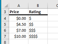 - Using the cost and the Price Table, look up the rating for each taco rating.
