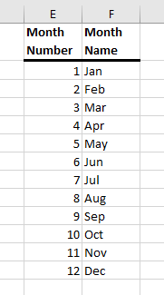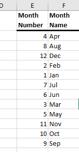 - Using vlookup and the table you just built, look up the name of each month in the Month Number field of the Data worksheet. Place this in the Month field.