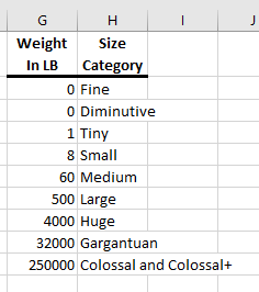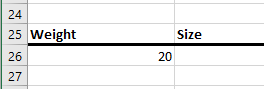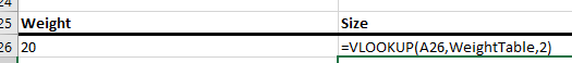 - =vlookup(a26, WeightTable,2)