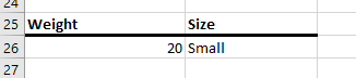 - We are searching for a 20 in the Weight table, and we would like the second column back.