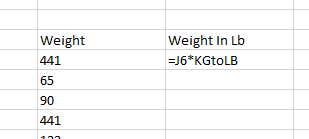 - Under this add the formula =J6*KGtoLB