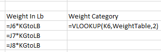 - Enter the vlookup to lookup the weight in the Weight Table