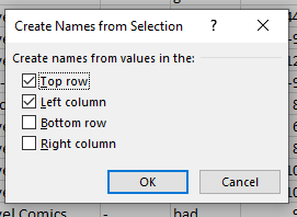 - The names should come from the Top Row only, so uncheck Left Column if it is checked.