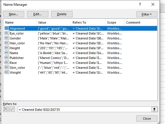 - You should be working on the Cleaned Data worksheet of your superheros workbook.