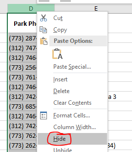 - Column D is probably just another way to state the park name so let's hide it.