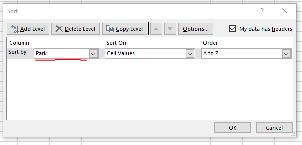 - Select the Park as the Sort by field.