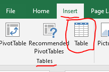 - On the Insert tab in the Tables command group select Table NOT PIVOT TABLE