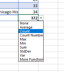 - Drop down the menu and select count