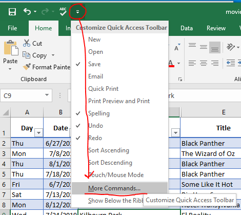 - Drop down the menu and select More Commands