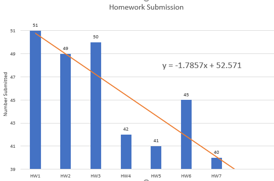 - We could adjust the ranges of the axis to emphasize that fewer people are doing homework.