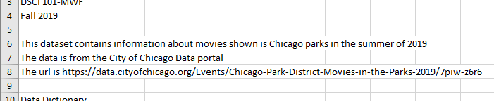- We are working with the 2019 Chicago Movies in the Park Dataset.