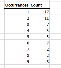 - Provide a summary table of the number of incidents which occurred less than 10 times.