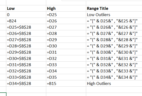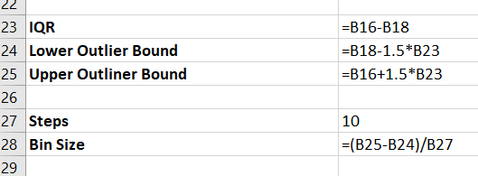 - In D26 put =d25+the bin size