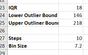 - For 10 bins between 146 and 218 I divide the difference by 10