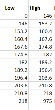 - In the first bin I want to count everything less than or equal to 146