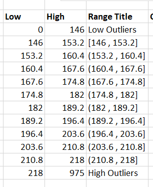 - I want to build a the ranges for these bins.