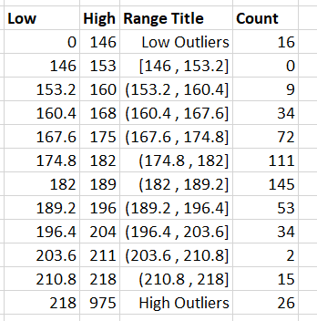 - Ok, now for the second we want to count things that are greater than or equal to 146 but less than or equal to 153.2