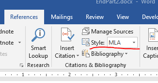- On the References tab, in the Citations & Bibliography command group, select the Style dropdown