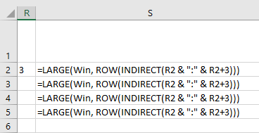 - =large(win, row(indirect(r2 & ":" & r2+3)))