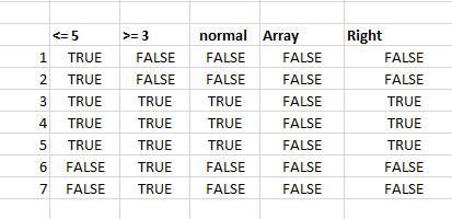- In the next column enter =range<=5 as an array formula