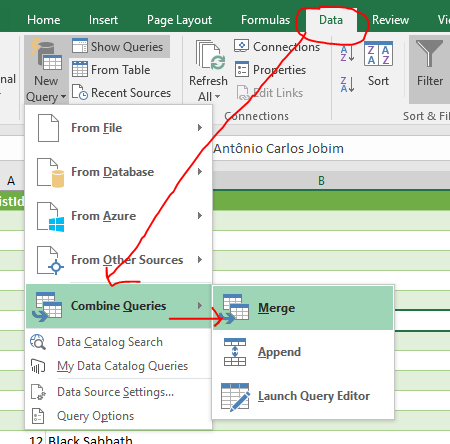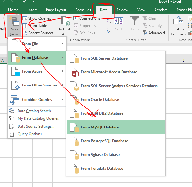 - Next on the Data tab, select New Query on the Get & Transform workgrup.