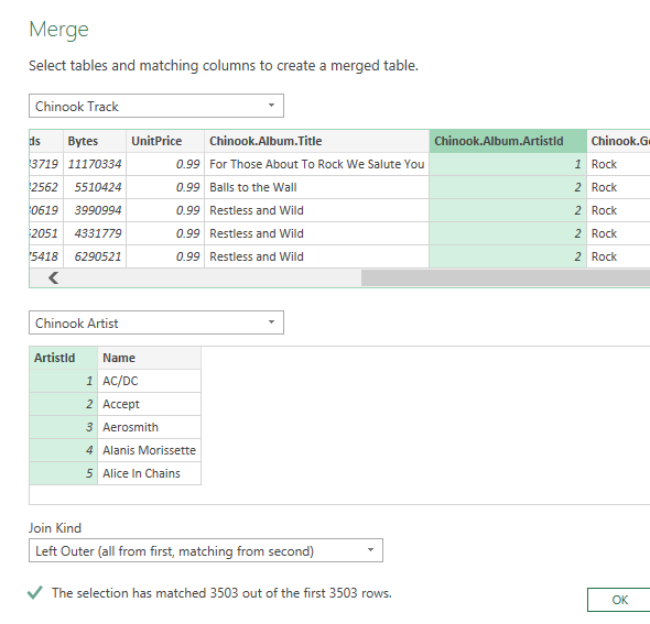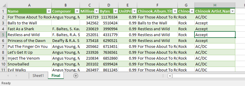 - Notice, I could have avoided most of this if I had just downloaded the artist table as well.