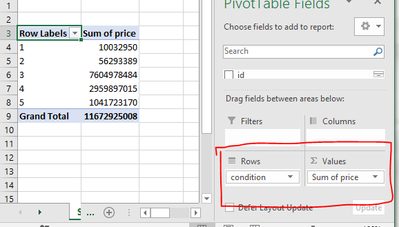 - Use the filter dropdown on Condition to select only houses in condition 3-5