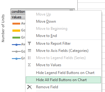 - Click on the gray box and select Hide All Field Buttons on Chart