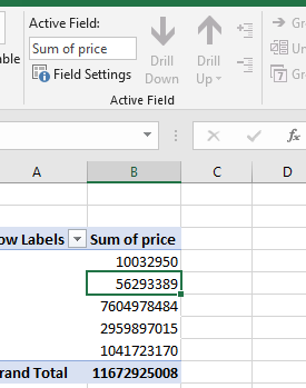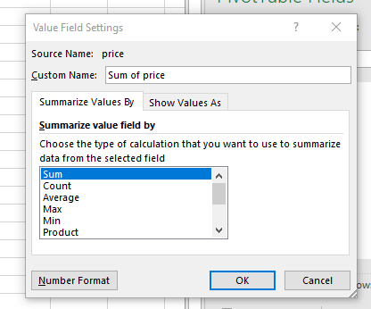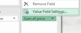 - In the Values Box drop down the selection box and click on Value Field Settings